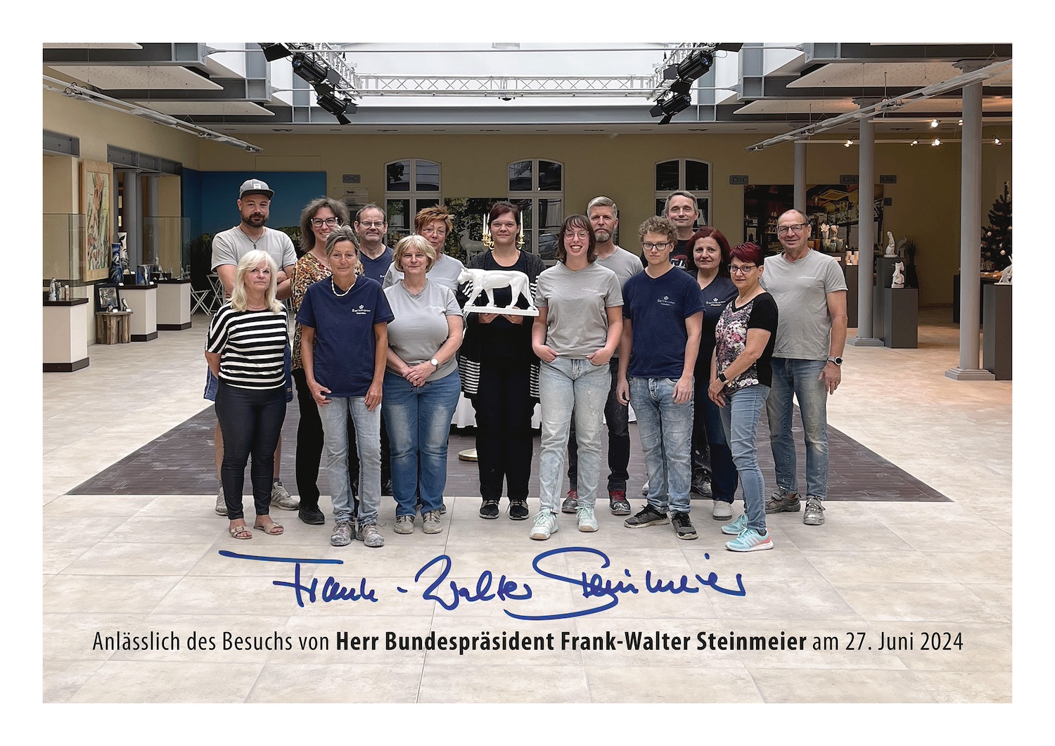 Ein besonderer Höhepunkt war die feierliche Übergabe der „Schreitenden Löwin“, ein Kunstwerk der Schwarzburger Werkstätten für Porzellankunst, an Herrn Steinmeier. Die Schwarzburger Werkstätten sind Teil der Porzellanmanufakturen, die in Rudolstadt/Volkstedt (Thüringen) produzieren.