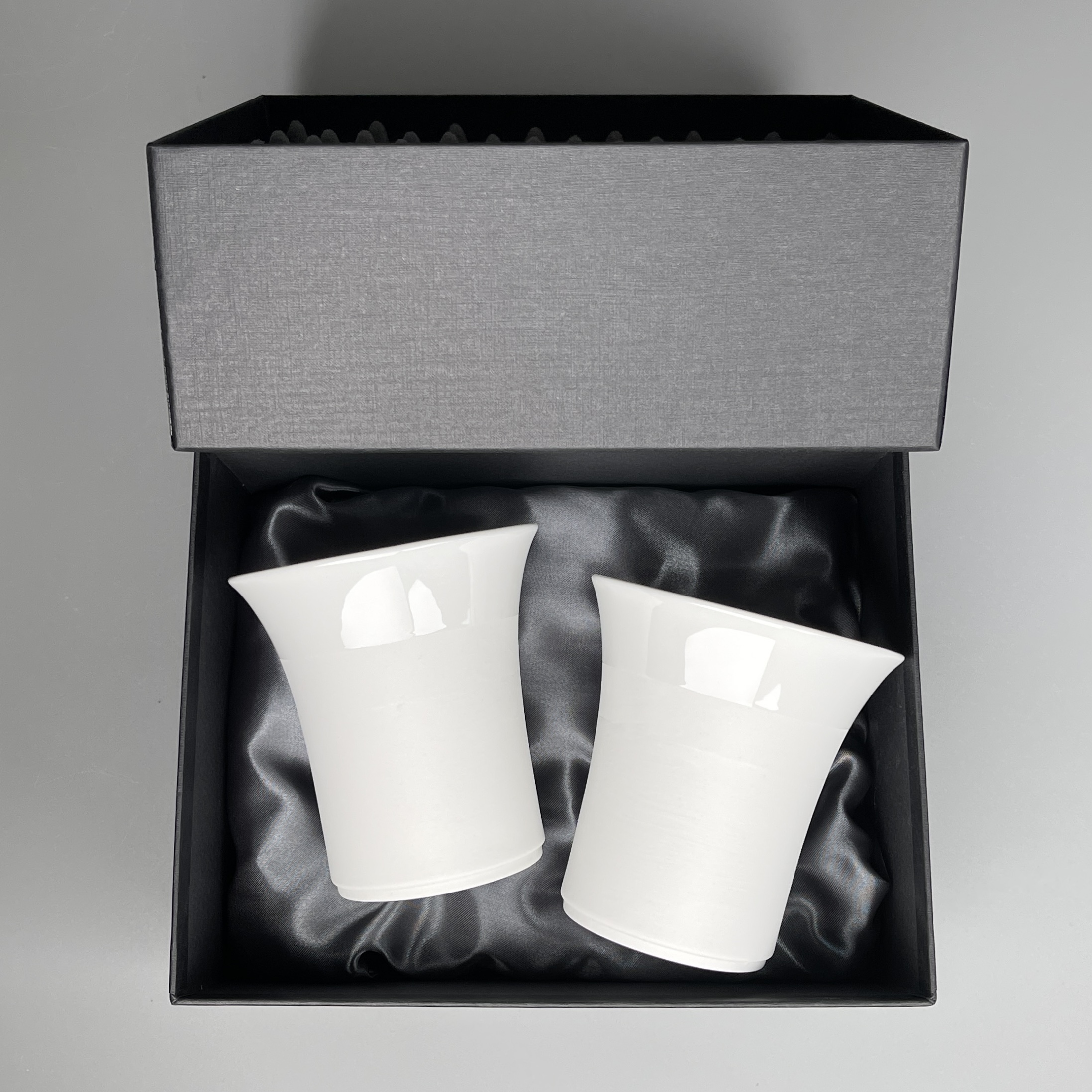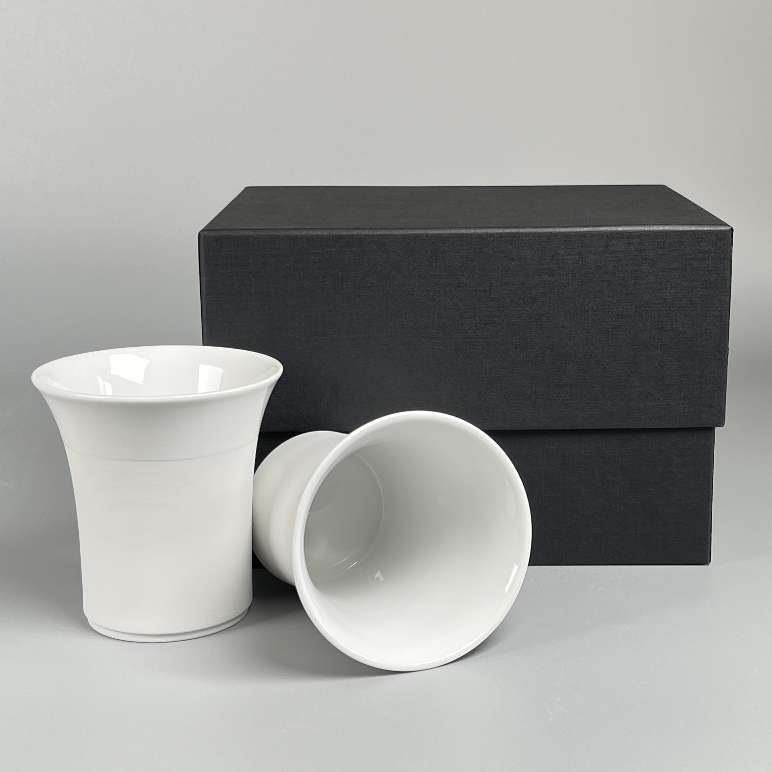 Die Becher ( 300ml ) haben z.T. eine matte, unglasierte Oberfläche. Innen und an der Mundfläche sind die Becher glasiert. Dieses ist eine sehr edle, außergewöhnliche Optik und in dem attraktivem Geschenkkarton ist das Becherset ein wahrer Blickfang.